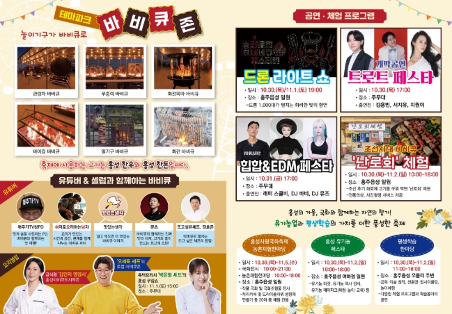 행사 일정과 세부 정보는 홍주문화관재단 공식 SNS를 통해 공개된다. 특히 올해는 세계 최대 바비큐 축제인 미국 멤피스 인 메이 바비큐페스티벌 TOP5 팀이 참가해, 홍성 축제가 세계적 미식축제로 도약할 것으로 기대를 모은다.