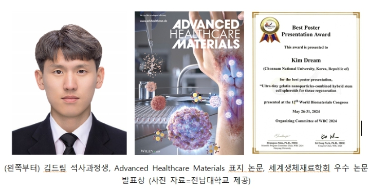 | ▲ 김드림 석사과정생, Advanced Healthcare Materials 표지 논문, 세계생체재료학회 우수 논문 |