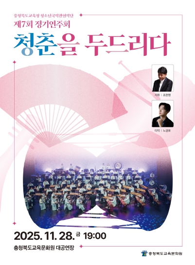 [무한뉴스=정민정 기자] 충청북도교육청 직속기관 교육문화원(원장 서종덕)은 28일 저녁 7시, 충북교육청 청소년국악관현악단이 교육문화원 대공연장에서 제7회 정기연주회 '청춘을 두드리다'를 열었다고 밝혔다.