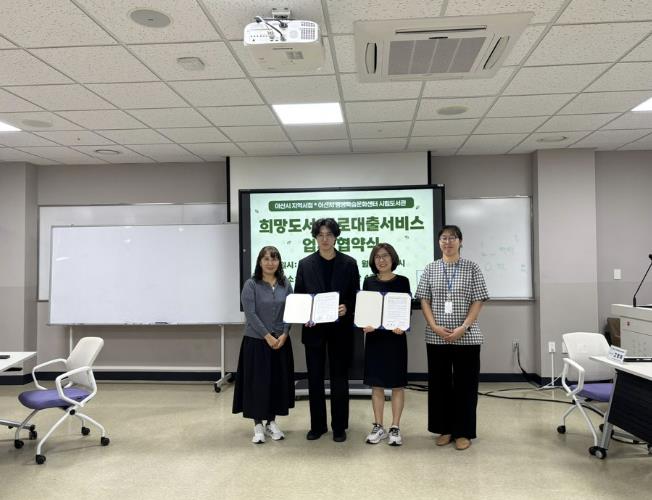 [무한뉴스=정민정 기자] 아산시는 13일 둔포면 소재 ‘어제의 서점’과 ‘희망도서 바로대출’ 서비스 운영을 위한 업무 협약을 체결했다고 밝혔다.