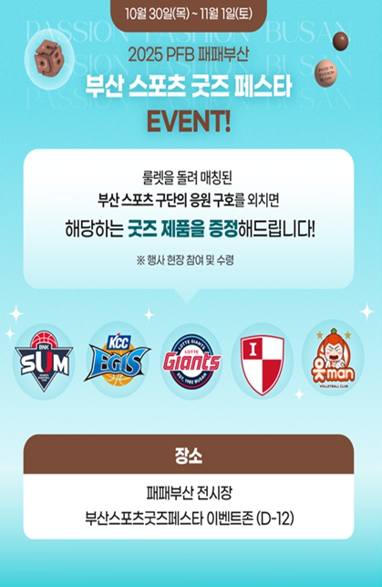[무한뉴스=최진수 기자] 부산시는 오늘(30일)부터 11월 1일까지 벡스코 제1전시장 1홀에서 열리는 '2025 패패부산'과 연계한 '부산 스포츠 굿즈 페스타' 행사를 개최한다고 밝혔다.