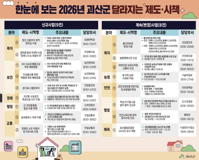 괴산군, 2026년 생활 달라지는 제도·시책 발표