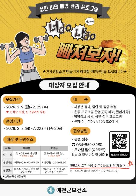 | ▲ 예천군, ‘2026년 성인 비만 예방 관리’ 참여 대상자 모집 |