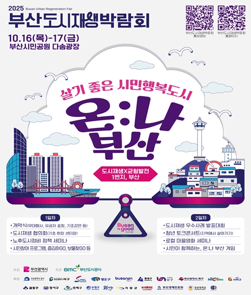 [무한뉴스=최진수 기자] 부산광역시는 오는 10월 16일부터 17일까지 이틀간 부산시민공원 다솜광장 일원에서 '2025년 부산도시재생박람회'를 개최한다고 밝혔다.