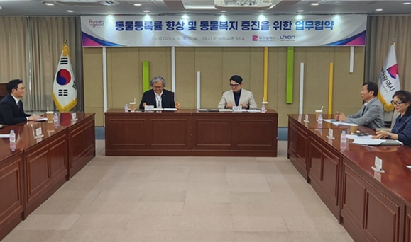 [무한뉴스=최진수 기자] 부산시는 동물등록률 향상 및 동물복지 증진을 위해 어제(30일) 오전 10시 시청 26층 회의실에서 '㈜유니온바이오메트릭스'와 업무협약(MOU)을 체결했다고 밝혔다.