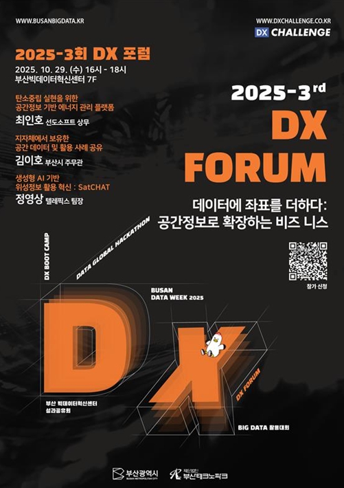[무한뉴스=최진수 기자] 부산시는 오는 10월 29일 오후 4시 부산빅데이터혁신센터(해운대구 센텀동로 45)에서 '2025-3회 디지털전환(DX) 포럼'을 개최한다고 밝혔다.