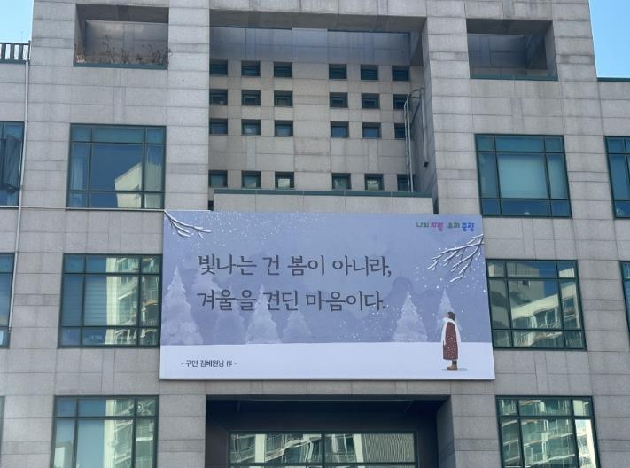 당선된 문안은 봄을 담은 디자인과 함께 3월부터 5월까지 중랑구청사 외벽에 게시된다.