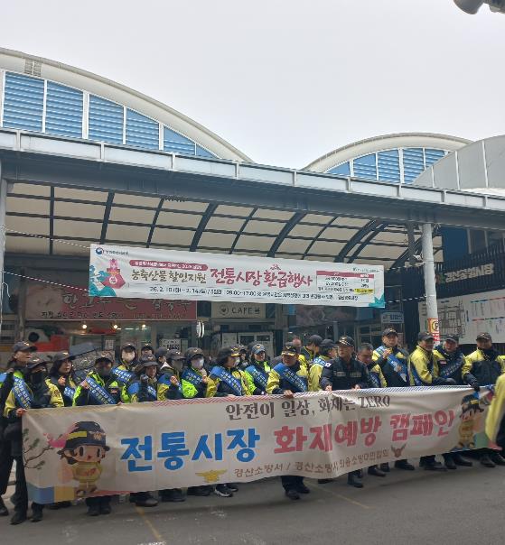 [무한뉴스=최진수 기자] 경산남성·여성의용소방대는 민족 대명절인 설을 앞두고 2월 10일, 경산공설시장 일대에서 안전하고 따뜻한 명절 분위기 조성을 위한 ‘전통시장 화재예방 캠페인’을 실시했다.