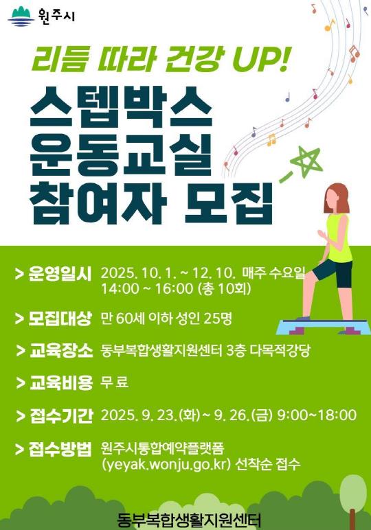 원주시동부복합생활지원센터, '리듬 따라 건강 업! 스텝박스 운동교실' 참여자 모집