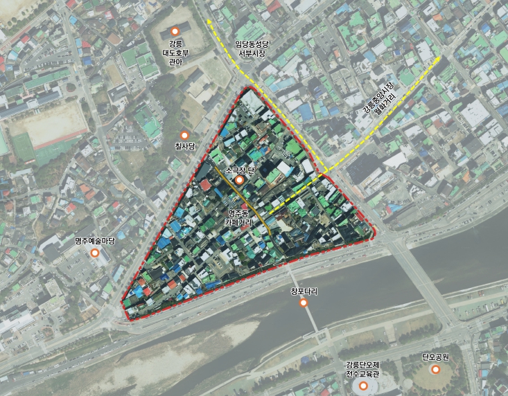 '명주·남문동 상권활성화사업'은 총사업비는 70억 원(국 35억, 도 10.5억, 시 24.5억) 규모로, 오랜 기간 행정 중심지였던 명주동·남문동 일원의 대도호부 관아와 적산가옥 등 역사적 자원을 활용하여 스토리텔링을 통한 매력적인 로컬상권 복원 계획을 담고 있다.