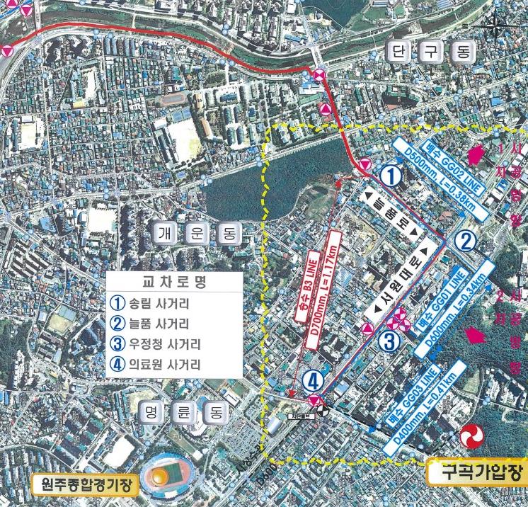 [무한뉴스=정민정 기자] 원주시상하수도사업소는 태장배수지 설치사업의 일환으로 진행 중인 ‘송림사거리-늘품사거리-우정청사거리 구간 송배수관로 설치공사’를 마무리하고, 오는 19일까지 도로 임시 포장을 마칠 예정이다.