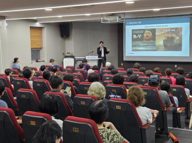 개강식에서는 사업 취지와 추진 현황을 공유한 뒤, 서용석 카이스트 문술미래전략대학원 교수가 ‘미래를 읽는 힘, 인공지능(AI) 시대 배우고 이끄는 시민의 미래 문해력’을 주제로 특강을 진행했다.
