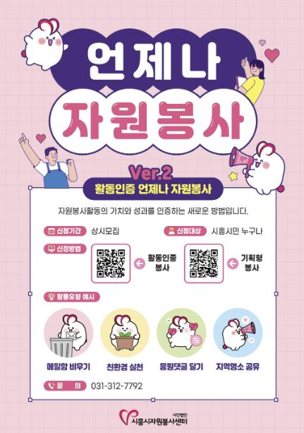 센터는 이번 사업을 계기로 시흥시자원봉사센터의 ‘언제나 자원봉사’ 페이지를 개편해, 시민들이 언제 어디서나, 비대면으로 쉽게 활동인증 자원봉사에 참여할 수 있는 시스템을 구축했다. 또한, 쓰담달리기(플로깅) 외에도 디지털 탄소 저감, 지역 문화 소개, 친환경 활동 등 다양한 종류의 활동인증 자원봉사 프로그램을 제공한다.