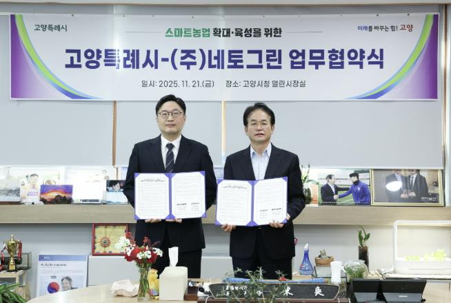 [무한뉴스=정승훈 기자] 고양특례시는 지난 21일(금) ㈜네토그린과 ‘스마트농업 확대·육성을 위한 업무협약(MOU)’을 체결했다고 밝혔다.