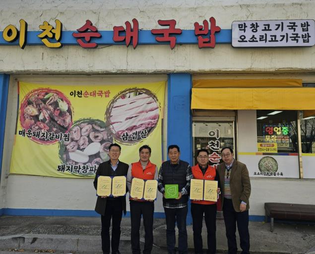 | ▲ 아산시 온양1동 행복키움추진단, 이천순대국밥과 정기 후원 협약 체결 |