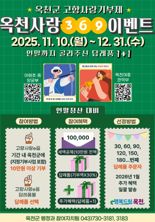 옥천군, 연말 맞아 고향사랑기부제 ‘옥천사랑369 이벤트’ 진행