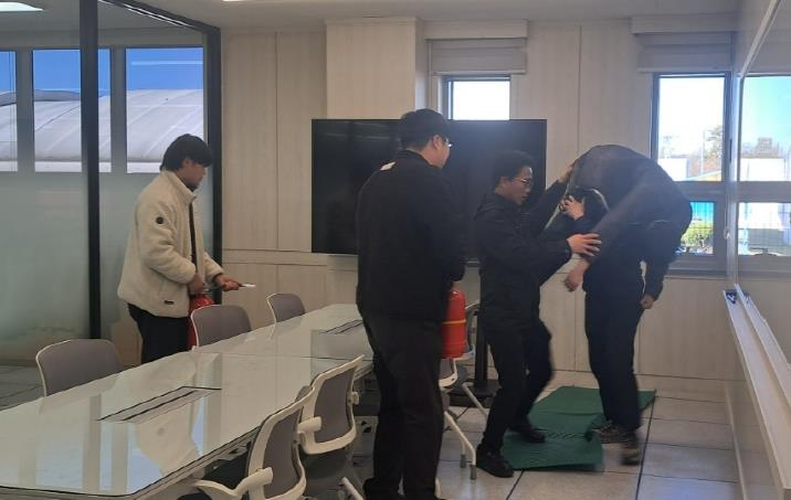훈련은 자위소방대 편성표에 따라 진압반, 구조구급반, 대피유도반으로 직원들을 분할 편성하여 진행됐으며, 청내 방송을 통한 화재전파, 소화기·소화전을 사용한 화재진화, 부상자 응급처치 및 후송, 안전한 피난 유도 등 실제 화재상황을 가정하여 진행됐다.