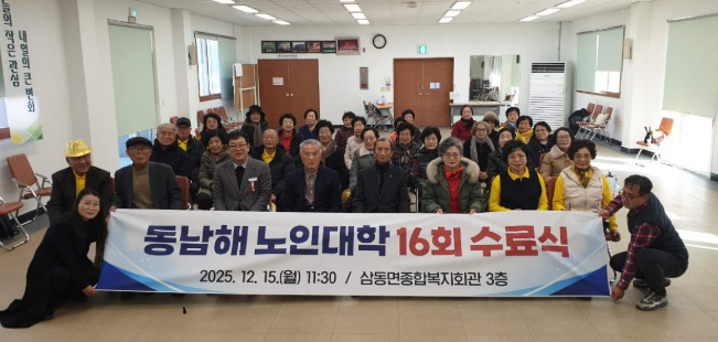 [무한뉴스=최진수 기자] 동남해노인대학이 15일 삼동면종합복지회관 3층 회의실에서 제16회 수료식을 개최했다.