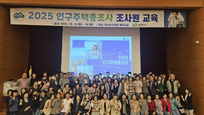 [무한뉴스=최진수 기자] 상주시는 지난 10월 13일부터 14일까지 청소년수련관 세미나실에서 2025 인구주택총조사의 성공적 추진을 위해 조사원 집합교육을 진행했다. 조사원 80명과 예비조사원 5명 등 총 85명이 참석한 이번 교육은 조사 지침 설명, 태블릿 PC 입력 실습, 개인정보보호 준수 의무, 돌발 상황 대응 교육 등을 중심으로 구성됐다.