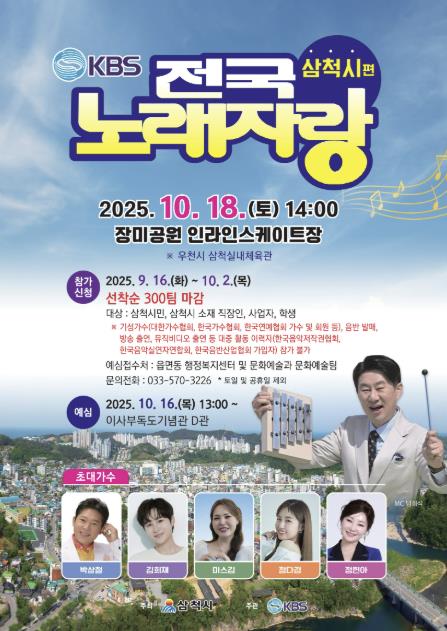 [무한뉴스=정민정 기자] 삼척시는 11년 만에 전국민의 사랑을 받는 인기 프로그램 ‘KBS 전국노래자랑’을 개최한다.