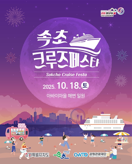 처음 개최되는 이 행사는 18일 오전 10시 크루즈 입항 일정에 맞춰 펼쳐지는 지역 상생형 속초 크루즈 관광 축제로, 국내외 관광객과 시민이 함께 즐기는 축제이다.