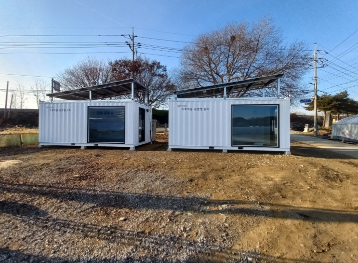한파와 폭염에 모두 대응하는 에너지자립형으로 설치된 친환경 쉼터는 이동식 컨테이너 형태로 제작됐으며, 내부에는 냉난방 설비가 완비되어 있다.