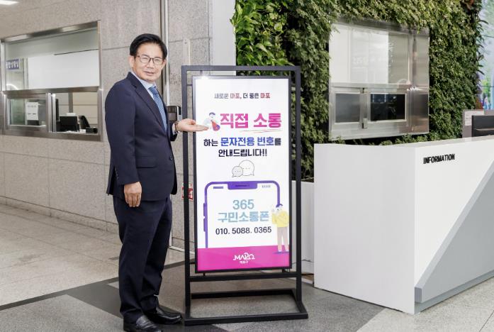 디지털 취약계층을 위해 고안된 ‘365구민소통폰’은 생활 속 불편이나 건의 사항을 문자메시지로 손쉽게 전달할 수 있는 마포구만의 민원 접수 수단으로, 열린 행정을 구현하겠다는 의미가 담겨있다.