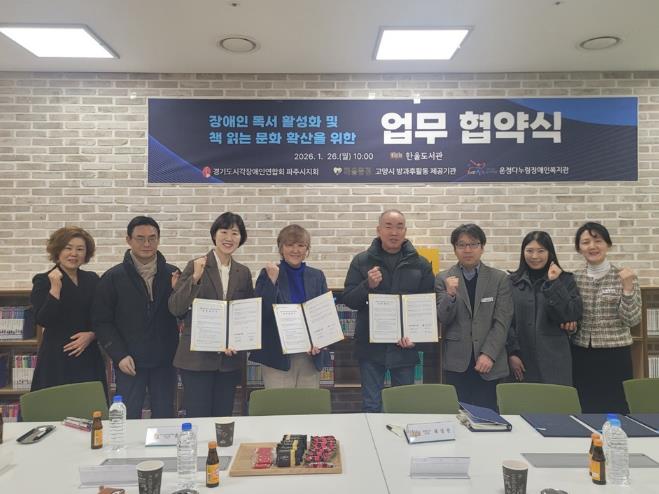 [무한뉴스=정승훈 기자] 파주시 한울도서관은 지난 26일 장애 특화 서비스 확대를 위해 관내 주요 유관 기관 및 단체와 업무협약식을 개최했다.