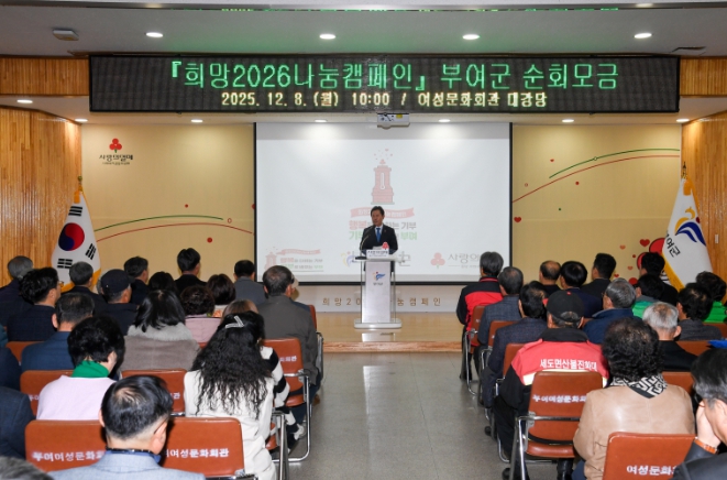 [무한뉴스=정민정 기자] 부여군은 ‘행복을 더하는 기부, 기부로 바꾸는 부여’라는 구호 아래 '희망 2026 나눔 캠페인' 순회 모금 행사를 지난 8일 여성문화회관 3층 대강당에서 개최했다.