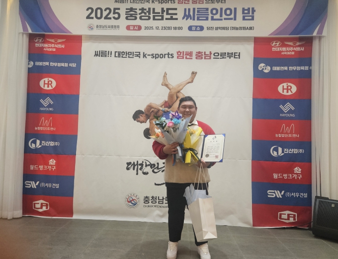 [무한뉴스=정민정 기자] 지난 23일 충남 당진시 A웨딩홀에서 열린 '2025년 충남 씨름인의 밤' 행사에서 청양초등학교 김민규(38) 씨름 감독이 충남교육감 표창을 수상하며 큰 주목을 받았다.
