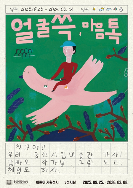 [무한뉴스=최진수 기자] 울산시립미술관은 오는 9월 25일부터 내년 3월 8일까지 1층 3전시실과 로비에서 어린이전시 ‘얼굴 쓱, 마음 톡’을 연다고 밝혔다.