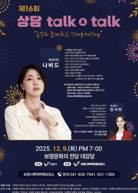 [무한뉴스=정민정 기자] 보령시는 지난 9일 보령문화의전당 대강당에서 음악과 함께하는 스토리텔링 ‘제16회 상담 talk&talk’ 행사를 개최했다고 밝혔다.