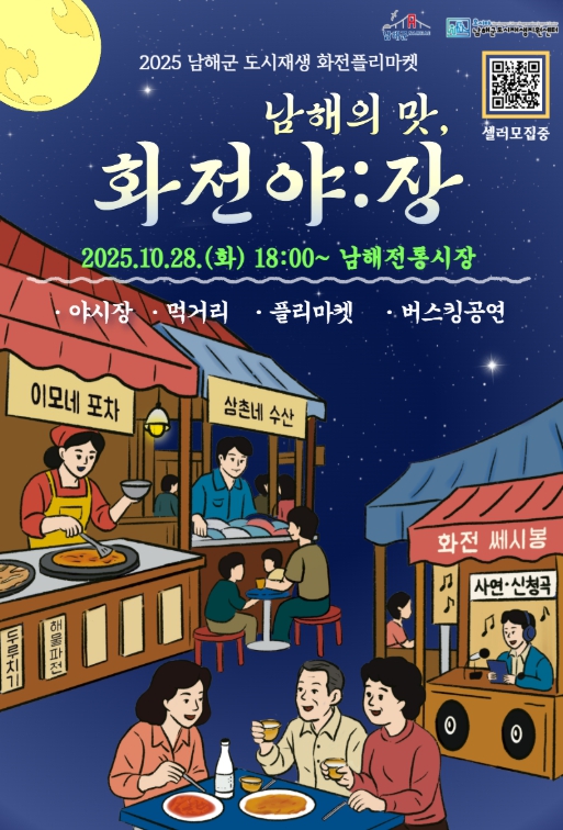 남해군도시재생지원센터 김성현 사무국장은 “화전야:장은 전통시장을 중심으로 지역의 맛과 문화를 함께 즐기고 알리는 자리”라며 “남해 전통시장 활성화와 지역 상생을 함께 만들어갈 셀러분들의 적극적인 관심과 참여를 바란다”고 전했다.