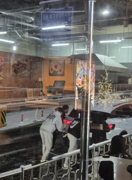 경사로 고립 차량들 밀어준 학생들...국민신문고에 칭찬글 올라와
