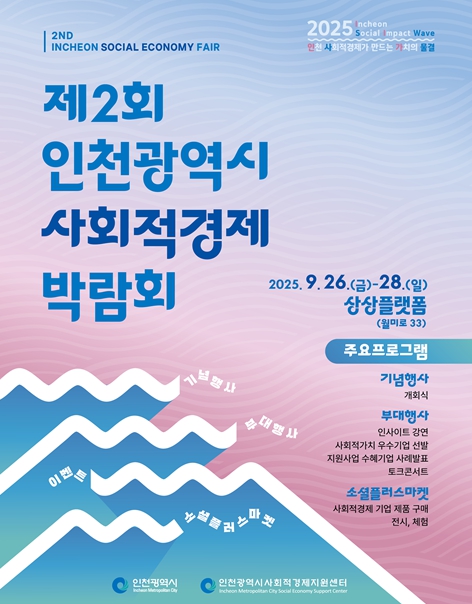 [무한뉴스=정승훈 기자] 인천광역시는 오는 9월 26일부터 28일까지 3일간, 인천 중구 상상플랫폼 웨이브홀에서 ‘제2회 인천광역시 사회적경제박람회’를 개최한다고 밝혔다.