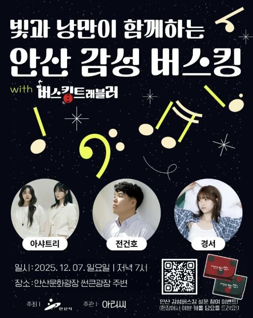 [무한뉴스=정승훈 기자] 안산시는 오는 7일 고잔동 안산문화광장 썬큰광장에서 ‘빛과 낭만이 함께하는 안산 감성 버스킹’ 공연을 개최한다고 3일 밝혔다.