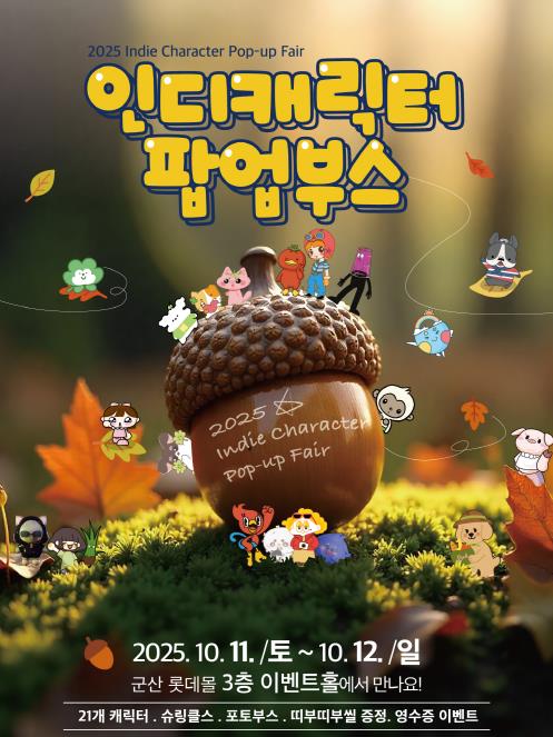 [무한뉴스=정민정 기자] 군산시 청년뜰 창업센터가 캐릭터 분야 창업가와 예비창업가 의 제품 홍보 및 판로개척을 지원하는 ‘롯데몰 연계 인디캐릭터 팝업부스 지원사업’을 오는 10월 11일부터 12일까지 진행한다.