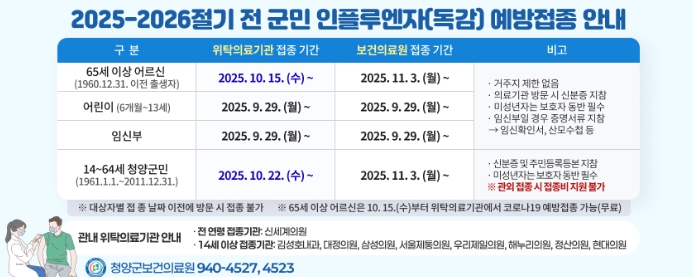| ▲ ‘2025-2026절기 전 군민 인플루엔자 무료 예방접종’ 일정 |