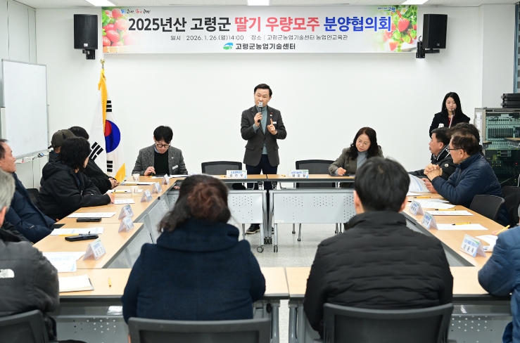 [무한뉴스=최진수 기자] 고령군은 1월 26일 농업기술센터 농업인교육관에서 ‘2025년산 고령군 딸기 우량모주 분양 협의회’를 개최했다. 이번 협의회는 2025년산 딸기 우량모주 공급 물량과 가격을 확정해 2026년 딸기 육묘 및 재배의 안정적 기반을 마련하기 위해 열렸다.