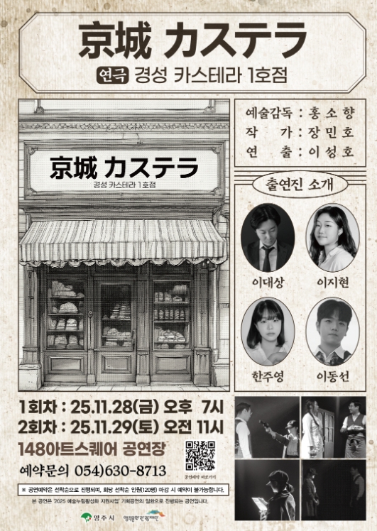 [무한뉴스=최진수 기자] (재)영주문화관광재단은 오는 11월 28일 오후 7시와 11월 29일 오전 11시, 148아트스퀘어 공연장에서 광복 80주년을 기념한 창작연극 '경성 카스테라 1호점'을 선보인다.