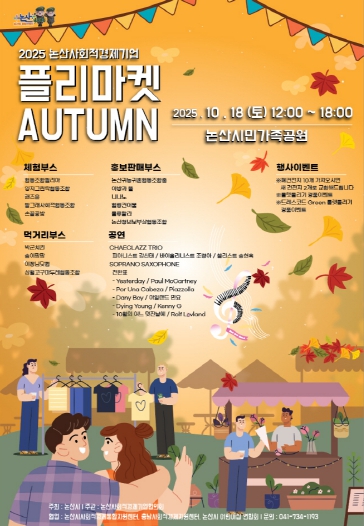 논산시(시장 백성현)는 오는 18일 12시부터 18시까지 논산시민가족공원 잔디마당에서 ‘논산시 사회적 경제기업 플리마켓-AUTUMN’을 개최한다.