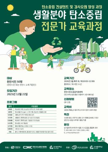 | ▲ 천안시 탄소중립지원센터 ‘생활분야 탄소중립 전문가 교육과정’ 홍보문. |
