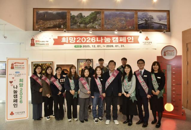 이번 행사는 ‘희망2026 나눔캠페인’의 성공적인 추진을 위한 것으로 본청 직원들을 대상으로 사랑의 열매와 캠페인 홍보물을 배부하며 이웃돕기 성금모금의 시작을 알리고 따뜻한 동참의 분위기를 확산시키기 위해 마련됐다.