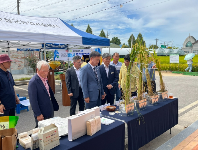 [무한뉴스=정민정 기자] 고창군이 지난 23일 아산면 상갑리 ‘고창쌀 브랜드화 품종비교 전시포’에서 김영식 고창군 부군수, 조민규 고창군의회 의장 등 내빈과 벼 재배농가 등 120여 명이 참석한 가운데 2025년 벼농사 종합평가회를 가졌다.