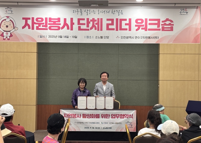 [무한뉴스=정승훈 기자] 인천광역시 연수구자원봉사센터와 충청북도 단양군자원봉사종합센터는 18일 (단양소노벨)에서 지역간 자원봉사 활성화와 네트워크를 통해 지역사회 발전을 위한 업무협약(MOU)을 체결했다고 밝혔다.