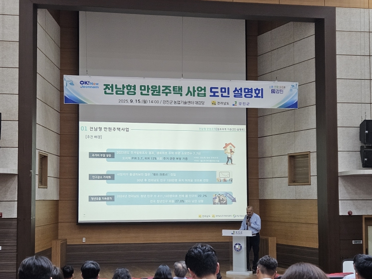 강진원 강진군수는 “이번 설명회는 군민들이 전남형 만원주택의 가치와 필요성에 깊이 공감한 뜻깊은 자리였다”며 “앞으로도 청년과 신혼부부가 안심하고 정착할 수 있는 주거 환경 조성을 위해 만원주택 사업을 차질 없이 추진하겠다”고 말했다.