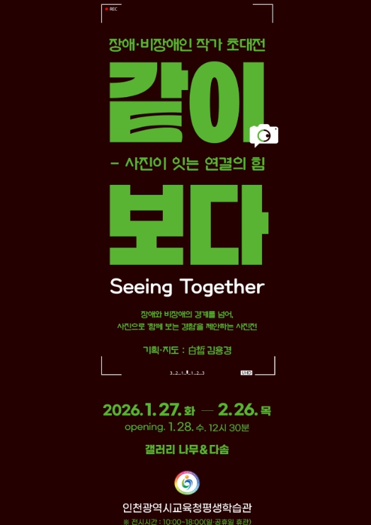 [무한뉴스=정승훈 기자] 인천광역시교육청평생학습관은 인천 시민을 대상으로 2층 갤러리 나무와 다솜에서 ‘같이, 보다(Seeing Together) 장애인 작가 초대전’을 개최한다.