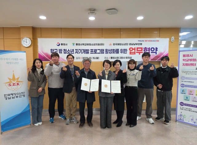 통영시학교밖청소년지원센터장을 겸임하고 있는 유정옥 통영시 여성가족과장은 “통영은 바다와 함께 성장하는 도시로, 통영의 청소년들에게 해양은 더욱 중요한 교육 자원이다”며 “이번 협약을 통해 학교 밖 청소년들이 통영의 해양환경을 직접 경험하며 자신감을 회복하고 새로운 진로 가능성을 발견하는 계기가 되길 기대한다”고 전했다.