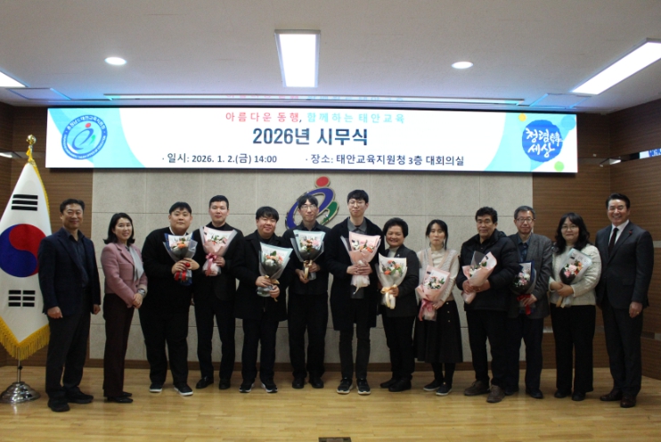 [무한뉴스=정민정 기자] 충청남도태안교육지원청은 지난 2일 오후 2시, 태안교육지원청 3층 대회의실에서 전 직원이 참석한 가운데 2026년 병오년(丙午年) 시무식을 개최했다.