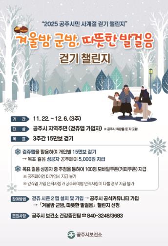 | ▲ 공주시, ‘겨울밤 군밤, 따뜻한 발걸음’ 걷기 챌린지 운영 |